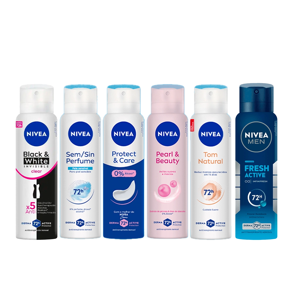 | Fragrância Nivea Desodorante | Black e White, Sem/Sin Perfume, Protect e Care, Pearl e Beauty, Tom Natural, Fresh Active |